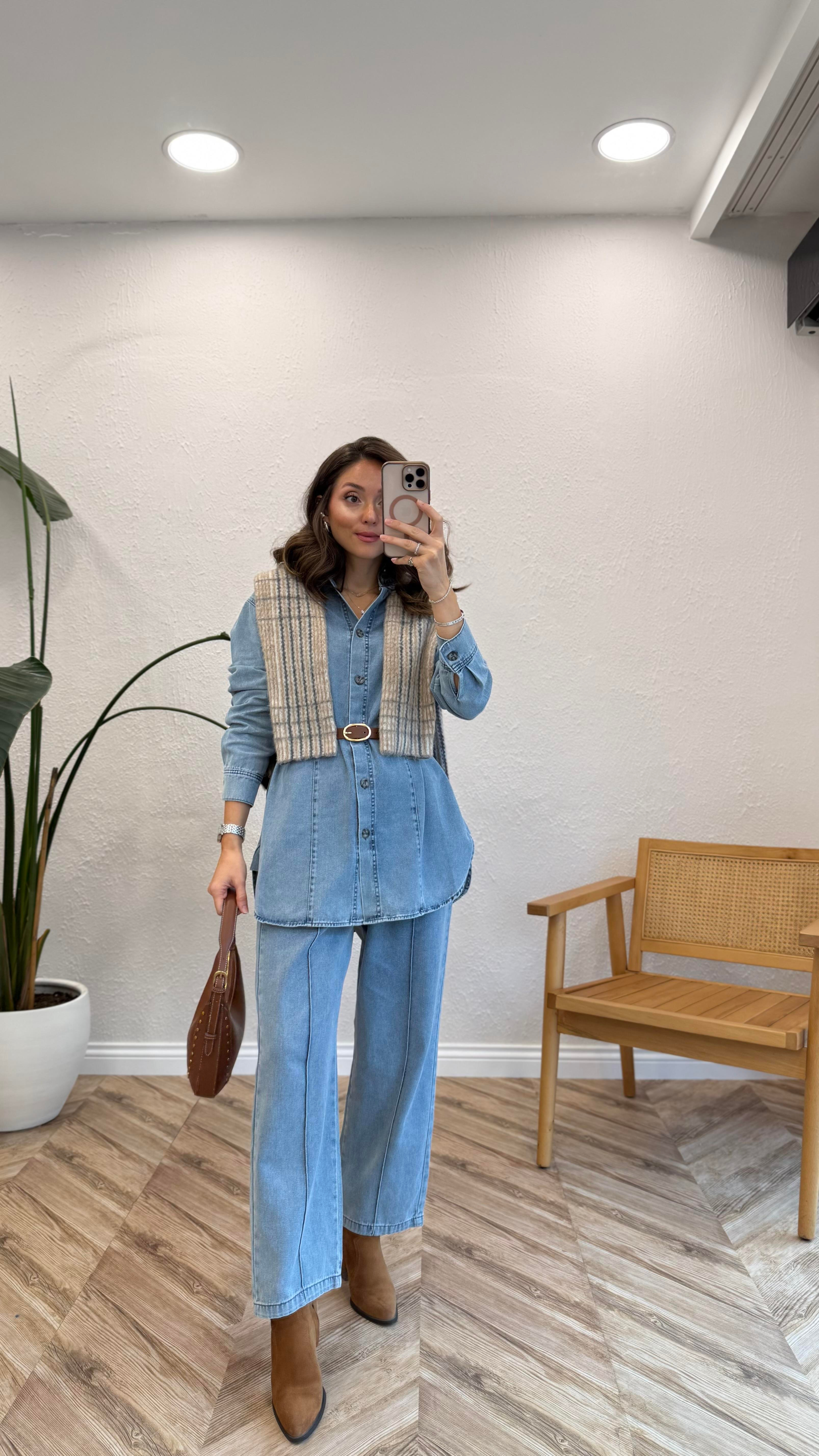 MANKEN BOY : 170 CM KİLO: 59 MANKEN ÜZERİNDE 1 KULLANILMIŞTIR. TAM KALIPTIR. KENDİ BEDENİNİZİ TERİC EDEBİLİRSİNİZ. 1 BEDEN ÖLÇÜLERİDİR. GÖĞÜS: 50 CM ÜST BOY: ÖN:72 CM ARKA: 80 CM BEL: 32 CM BASEN: 56 CM PANTOLON BOY: 97 CM KUMAŞ İÇERİĞİ: %100 PAMUK NOT: HER BEDEN ARASI 2-3 CM DEĞİŞKENLİK GÖSTERİR. ÜRÜN YIKAMA TALİMATLARINA UYGUN KULLANILMALIDIR.