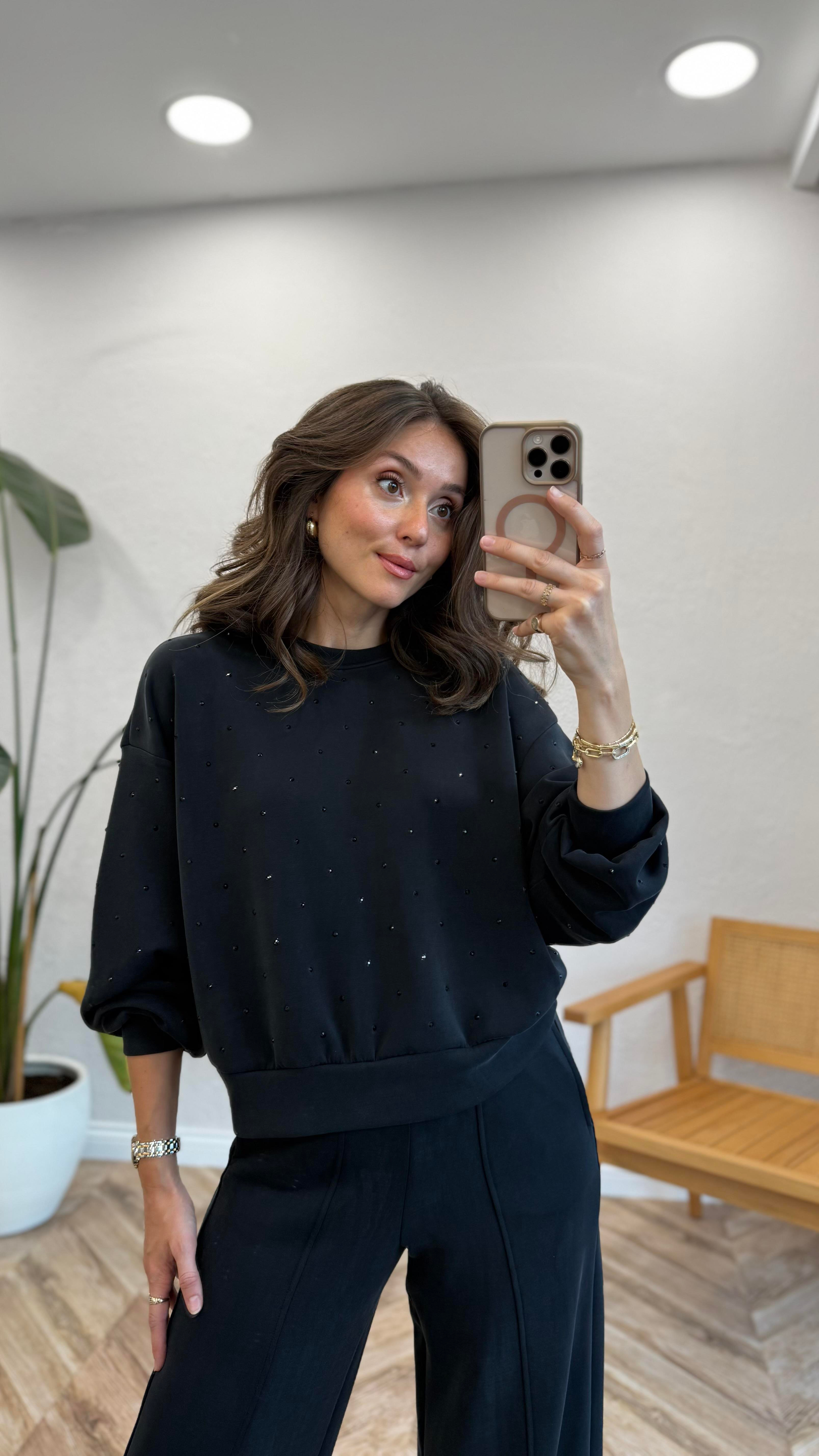 SİYAH 5386 TAŞ DETAY  SWEAT