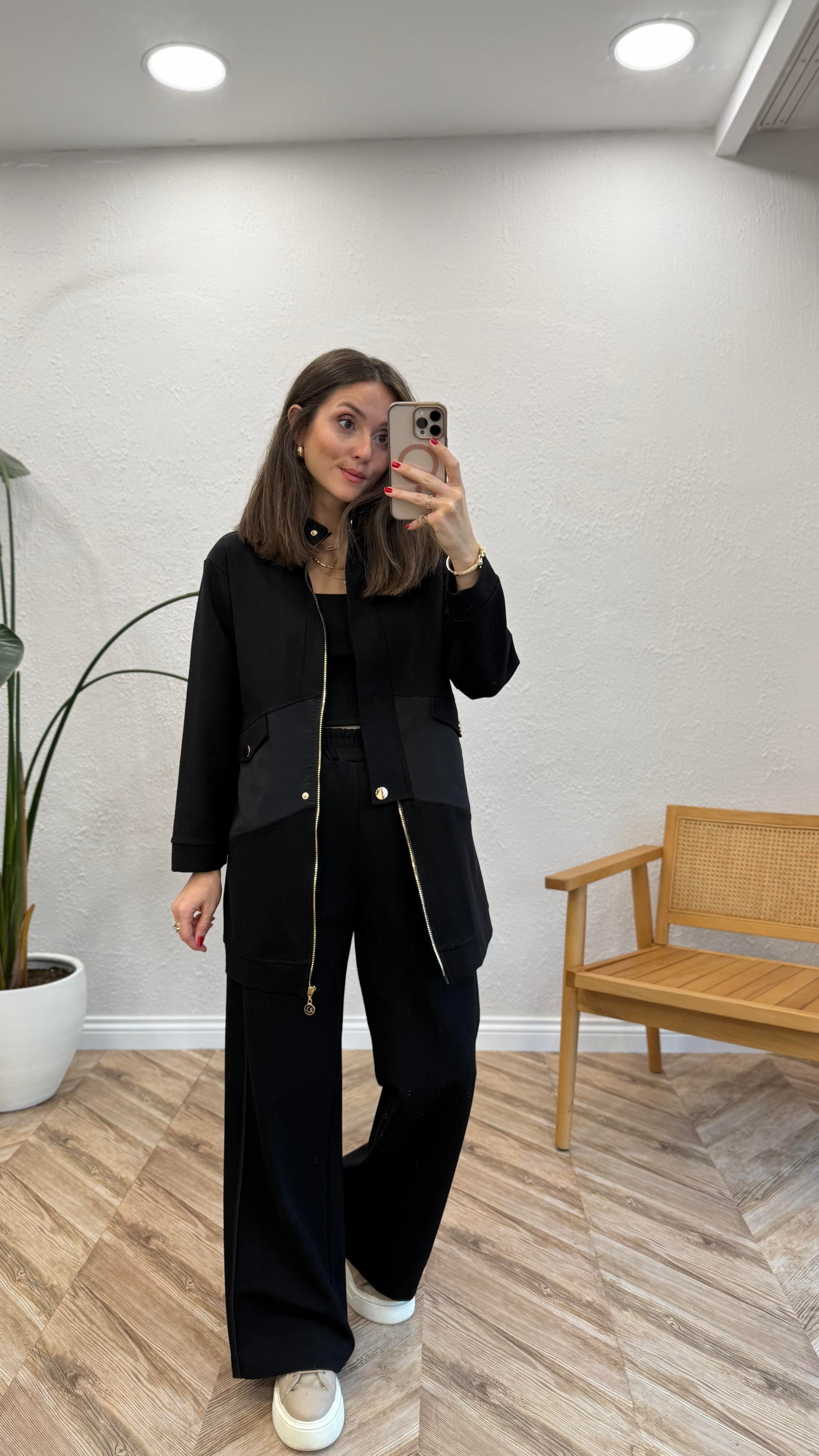 MANKEN BOY : 170 CM KİLO: 59 KG MANKEN ÜZERİNDE 1 BEDEN KULLANILMIŞTIR. TAM KALIPTIR. KENDİ BEDENİNİZİ TERİC EDEBİLİRSİNİZ. 1 BEDEN: 36-38-40 2 BEDEN: 40-42 3 BEDEN: 42-44 BEDENE DENK GELİYOR. 1 BEDEN ÖLÇÜLERİDİR. ÜST UZUNLUK: 76 CM GÖĞÜS: 50 CM ALT UZUNLUK: 105 CM BEL: 38 CM BASEN: 50 CM KUMAŞ İÇERİĞİ: %100 PES NOT: HER BEDEN ARASI 2-3 CM DEĞİŞKENLİK GÖSTERİR. ÜRÜN YIKAMA TALİMATLARINA UYGUN KULLANILMALIDIR.